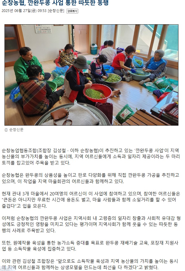 ¼øÃ¢³óÇù, ±ñ¿ÏµÎÄá »ç¾÷ ÅëÇÑ µû¶æÇÑ µ¿Çà